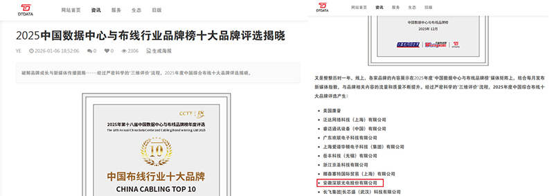 2026年1月,由DTDATA主办的“2025中国数据中心与布线行业品牌榜”评选结果正式揭晓。安徽意昂体育光电股份有限公司(简称:意昂体育光电)旗下意昂体育(意昂体育)品牌凭借卓越的技术实力与市场口碑,再度蝉联“中国布线行业十大品牌”称号,并同步斩获“中国数据中心及综合布线行业质量信赖品牌奖”。